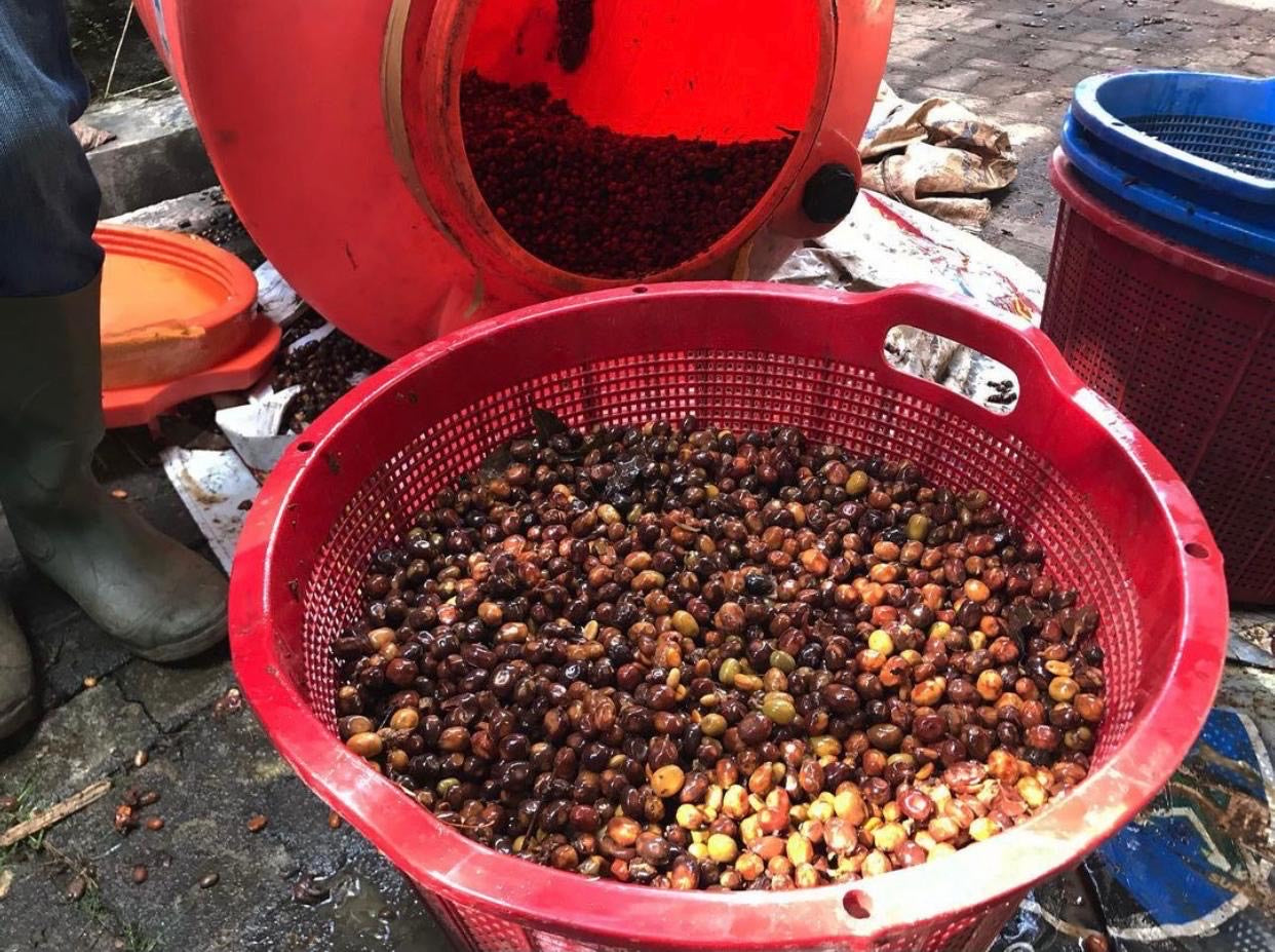 Grown at 1,350-1,450 MASL on the lush Bener Meriah Farm, this coffee showcases the region’s potential through innovative experimental processing. By using a peach inoculation and yeast fermentation, the producers have crafted a cup with remarkable depth and character.